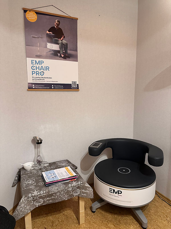 Ein starker Beckenboden ist wichtig für Stabilität, Kontinenz und Lebensqualität. Mit dem EMP Chair Pro bieten wir ein innovatives Beckenbodentraining, das alle drei Muskelschichten gezielt aktiviert. In nur 28 Minuten pro Sitzung erzeugen elektromagnetische Impulse tausende intensive Muskelkontraktionen – effektiver als klassisches Training. Die Anwendung erfolgt entspannt im Sitzen und eignet sich für Frauen und Männer jeden Alters, z. B. bei Inkontinenz, nach Geburten oder Prostata-OPs sowie zur Unterstützung von Stabilität und Wohlbefinden. Weitere Informationen